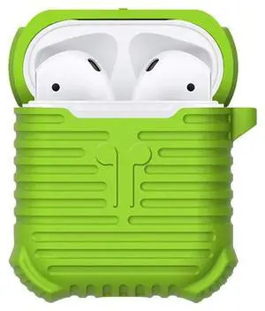 Green Soft Silicone Carrying Case Cover with Strap Clip for Apple AirPods