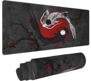 Japanese Yin and Yang Koi Carp Gaming Mouse Pad XL Non Slip Rubber Base Mousepad Stitched Edges Desk Pad Extended Large Mice Pad 31.5 X 11.8 Inch