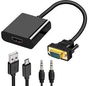 VGA to HDMI Adapter Converter 15 Pin D-sub to HDMI Converter 1080P Full HD VGA Source Output to HDMI Host Input Video Dongle for Monitor Laptop HDTV PC (VGA Output to HDMI Input Irreversible)