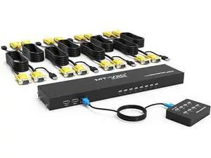 KVM Switch 8 Port, MT-VIKI 8X1 Rackmount KVM Switch VGA, Included 8 2-in-1 KVM Cables & Wire-Desktop Selector