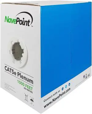 NavePoint Cat5e Plenum Jacket, 1000ft, Black, CCA Bulk Ethernet Cable, 350MHz, 24AWG 4 Pair, Unshielded Twisted Pair (UTP)