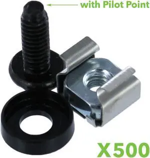 NavePoint 500 Pack Lot - M6 Rack Mount Cage Nuts & Screws w/Washers - Square Clips Server