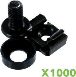 NavePoint 1000 Pack Lot - M6 Rack Mount Cage Nuts & Screws w/Washers - Square Clips Server