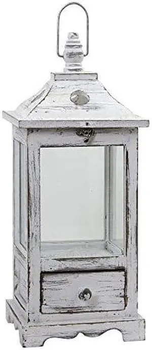 Distressed Wooden Lantern with Drawers