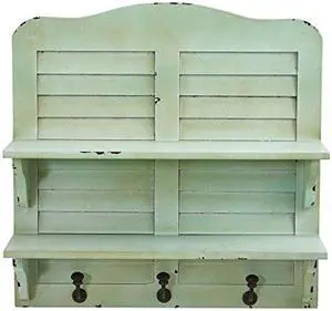 20 Vintage Window Shutter Shelving with Hooks Wall Decor