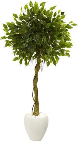 Nearly Natural 5775 5.5 ft. Ficus Artificial Tree in White Oval Planter UV Resistant - Indoor & Outdoor