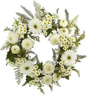 Nearly Natural 4210 24 in. Mixed Daisys And Ranunculus Wreath
