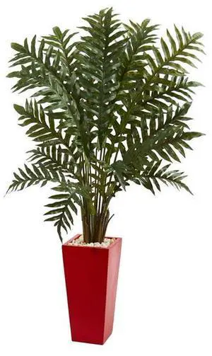 Nearly Natural 6425 4.5 ft. Evergreen Artificial Plant in Red Tower Vase