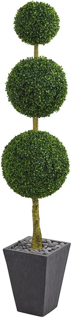 Nearly Natural 5613 6 ft. Boxwood Triple Ball Topiary Artificial Tree in Slate Planter UV Resistant - Indoor & Outdoor