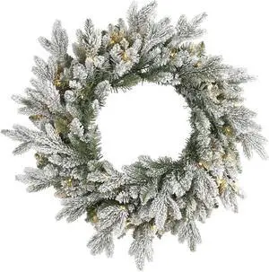 Nearly Natural 24" Flocked Artificial Christmas Wreath with 50 LED Lights