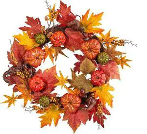 Nearly Natural 24" Autumn Maple Leaf & Berries Fall Artificial Wreath