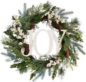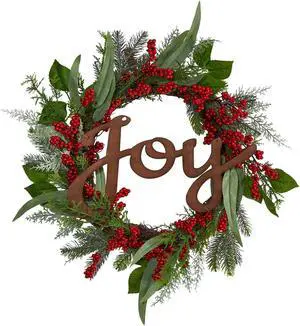 Nearly Natural 24" Joy and Berries Artificial Christmas Wreath