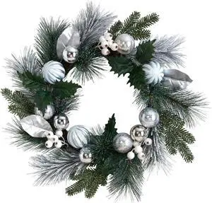 Nearly Natural 24" Christmas Artificial Wreath with Silver Ornaments