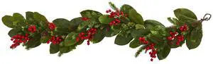 Nearly Natural 5' Magnolia Leaf, Berry and Pine Artificial Garland