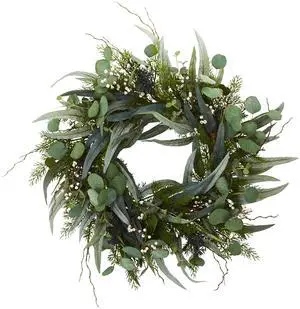 Nearly Natural 24" Eucalyptus and Mixed Greens Artificial Wreath