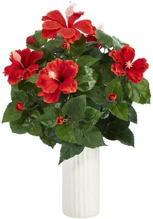 Nearly Natural 20" Hibiscus Artificial Plant Plant in White Planter