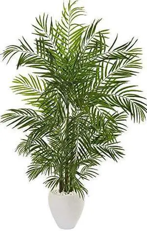 Nearly Natural 61" Paradise Palm Tree in White Planter with Stand