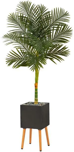 Nearly Natural 6' Golden Cane Palm Tree in Black Planter with Stand