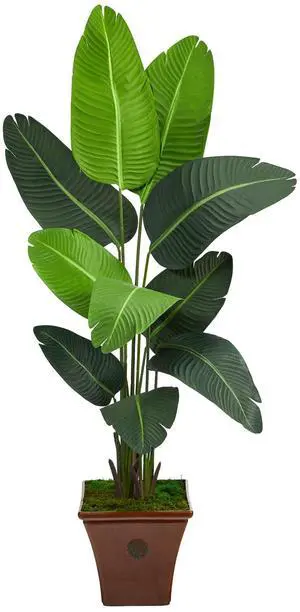 Nearly Natural 5.5' Travelers Palm Artificial Tree in Brown Planter