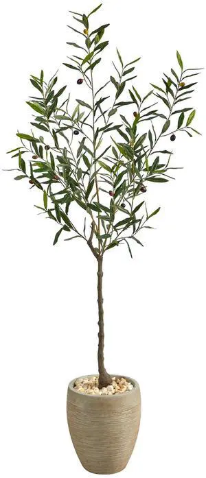 Nearly Natural 5.5' Olive Artificial Tree in Sand Colored Planter