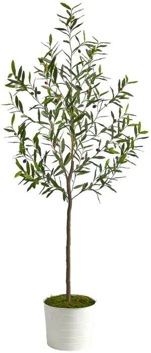 Nearly Natural 70" Olive Artificial Tree in White Tin Planter