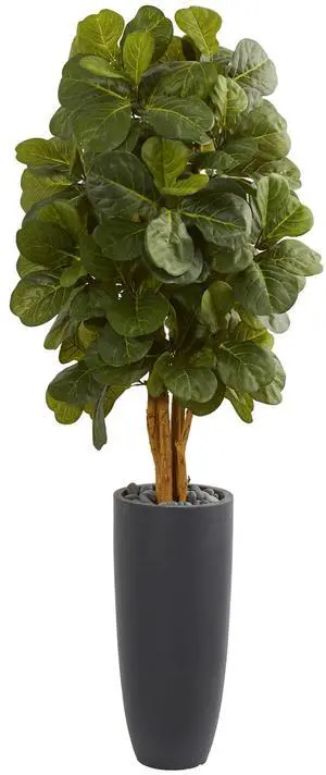 Nearly Natural 5.5' Fiddle Leaf Artificial Tree in Gray Cylinder Planter