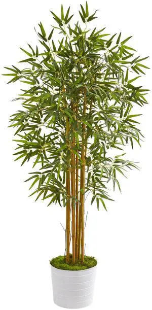 Nearly Natural 5' Bamboo Artificial Tree in White Tin Planter