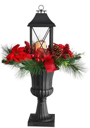 Nearly Natural 33" Christmas Lantern with Poinsettia and Berries in Urn