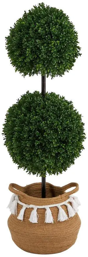 Nearly Natural 3.5' Boxwood Tree in Jute Gray Planter UV (Indoor/Outdoor)
