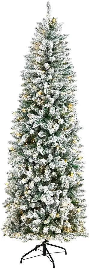 Nearly Natural 7' Flocked Slim Montreal Xmas Tree with 995 Tips and 300 LED