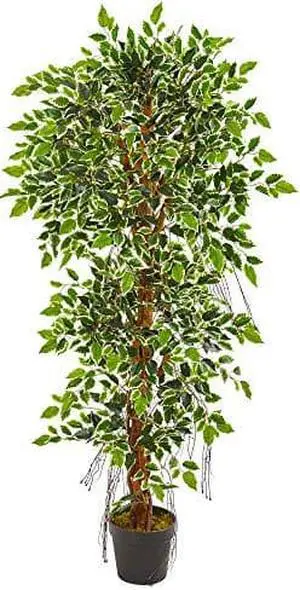 Nearly Natural 63" Elegant Ficus Artificial Tree in Sandstone Planter