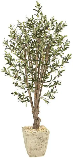 Nearly Natural 5' Olive Artificial Tree in Country White Planter