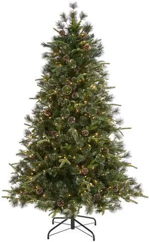 Nearly Natural 6FT PVC Flocked Xmas Tree w/758 Tips & 250 LED Lights