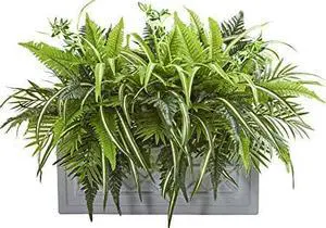 Mixed Greens and Fern Artificial in Stone Planter