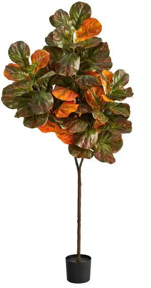 Nearly Natural 6' Autumn Fiddle Leaf Artificial Tree