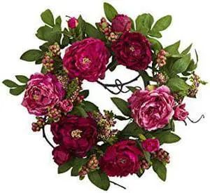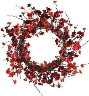 Nearly Natural 4813 Plum Blossom Wreath, 24-Inch, Red,16" x 16" x 6"