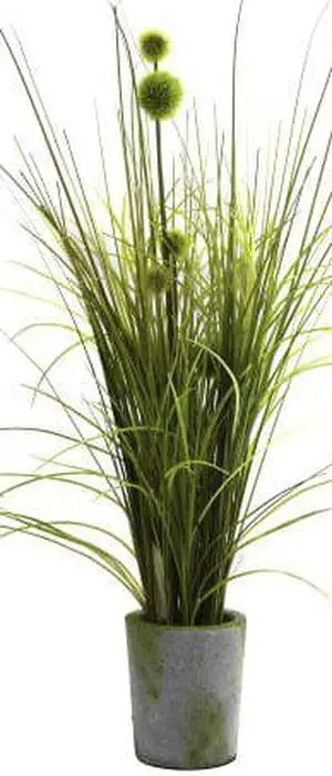 Nearly Natural 4975 Grass and Dandelion with Cement Planter, Green