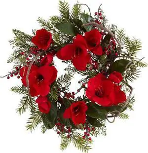 Nearly Natural Amaryllis Artificial Wreath, 24-Inch