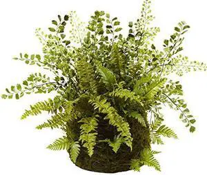 Nearly Natural 4846 Mixed Fern with Twig and Moss Basket,Green