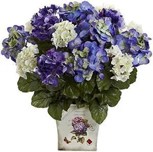 Nearly Natural 1378-Bp Mixed Hydrangea With Floral Planter, Blue/Purple