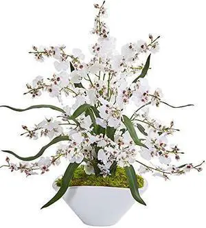 Nearly Natural Dancing Lady Orchid Artificial White Vase Silk Arrangements
