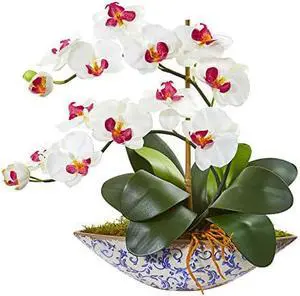 Nearly Natural Phalaenopsis Orchid Artificial Vase Silk Arrangements, White
