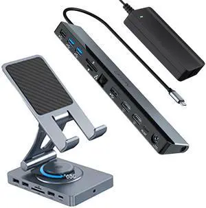 Versatile USB C Docking Station for iPad, 11-in-1 with SD TF 4.0 Reader, 4K@60Hz HDMI, RJ45, Audio, USB A, USB C, Rotatable Dock, for Tablet, Steam Deck, ROG Ally, Legion Go, Msi Claw, Samsung, etc