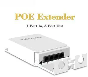 4 Port Waterproof POE Repeater 10/100Mbps Outdoor Network POE Extender IP55 VLAN 44-57V 30W IEEE802.3af for POE System Camera
