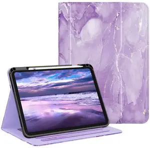 OKP Case for iPad A16 11th Generation 2025 / 10th Gen Case 2022, for 11 Inch / 10.9 Inch iPad Multi-Angle Viewing PU Leather Stand Cover with Pencil Holder & Pocket, Auto Sleep/Wake, Marble Purple