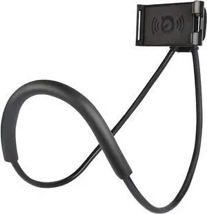 Universal Smart Mobile Phone Stand Hanging on Neck Cell Phone Mount Holder Flexible Lazy Bracket DIY Free Rotating for Multiple Functions (Black)