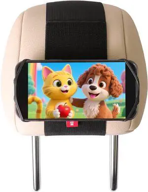 Silicone Car Phone Holder Adjustable Phone Mount Holders for Your Car Headrest Compatible with iPhone 17 16 15 14 13 Pro Max and other 3.5 - 7 Inch Cell Phones Mount for Kids in Back Seats - Black