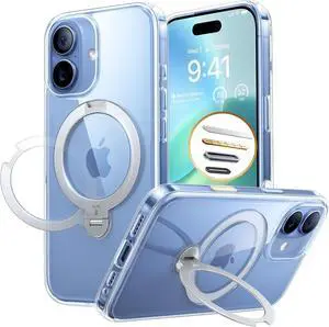 Q3 Spin for iPhone 17 Case with 360 Magnetic Stand Fit for MagSafe Non-Yellowing Kickstand Case for iPhone 17 Phone Case with Camera Control Cover Hard PC Protection Clear