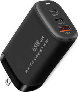 65W USB C Power Adapter PD 3.0 Type c Charging Block Wall Charger for iPhone 16Pro/ 15Pro Max!14/14Pro/13Pro/13 3 Output (45W+20W) Black