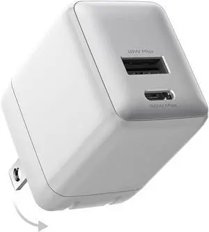 USB C Fast Charging Charger 30W Dual-Port GaN Nano Charger with Foldable Plug for iPhone 16/15 Series iPad Galaxy S24 Ultra and More Series (White 1 Pack)